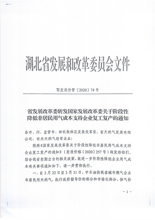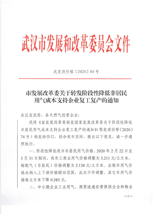 【政策】市發(fā)展改革委關(guān)于轉(zhuǎn)發(fā)階段性降低非居民用氣成本支持企業(yè)復(fù)工復(fù)產(chǎn)的通知(武發(fā)改價(jià)格[2020]80號)